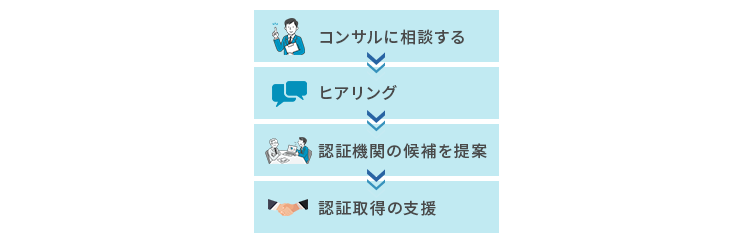 そのため、多くの企業がISO認証の取得サポートを実施しているコンサルティング会社に依頼して、自社に適したISO認証機関の提案を受けています。